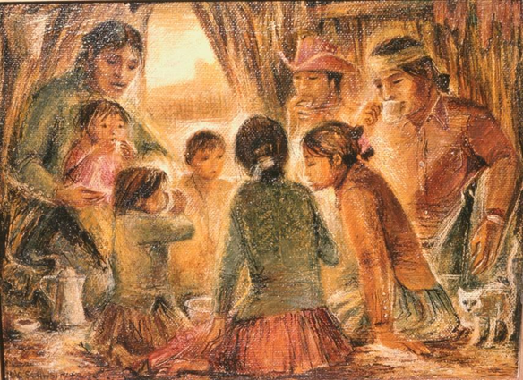 Mac Schweitzer, 1961, Breakfast at Betatakin, oil on canvas board, © Estate of Mac Schweitzer.